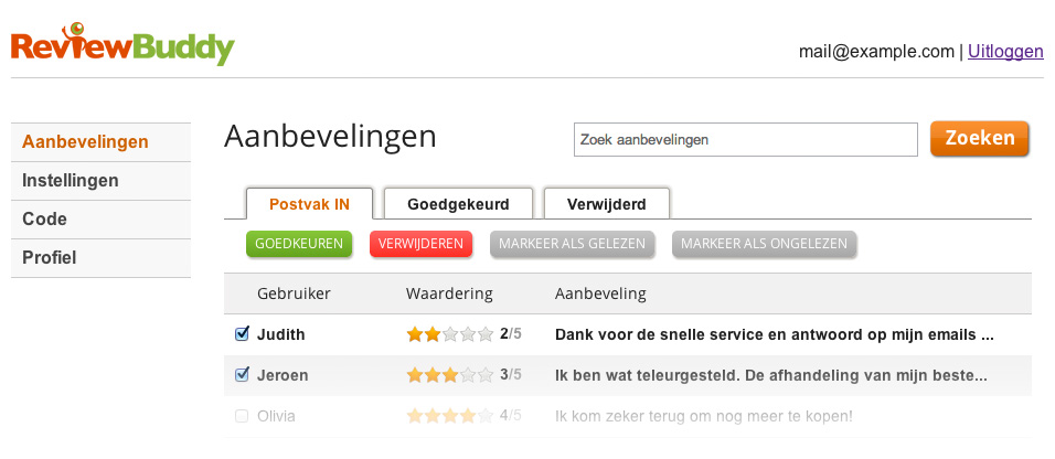 ReviewBuddy - Voeg beoordelingen toe aan uw website